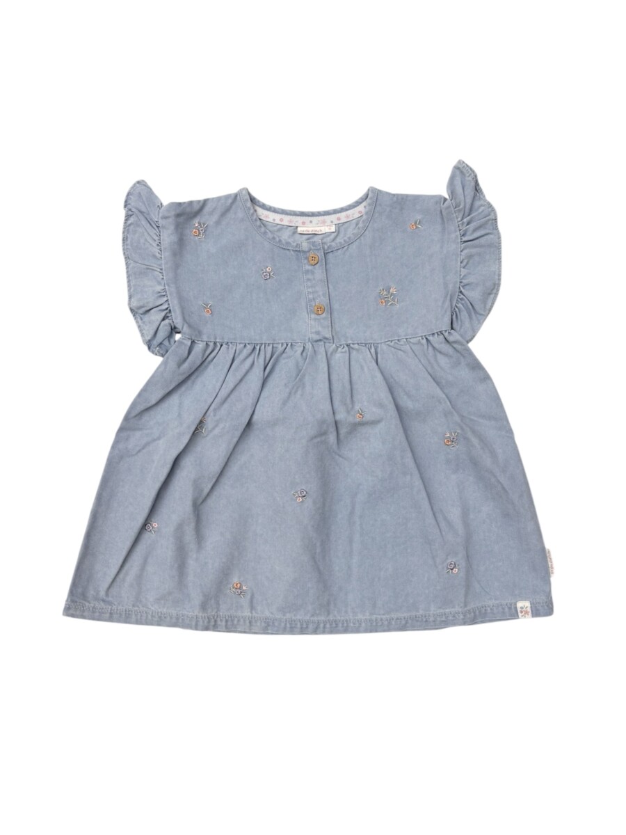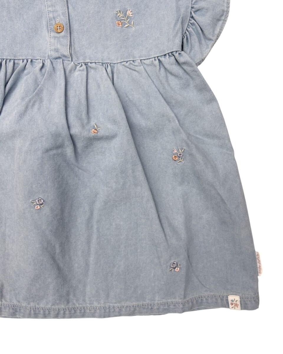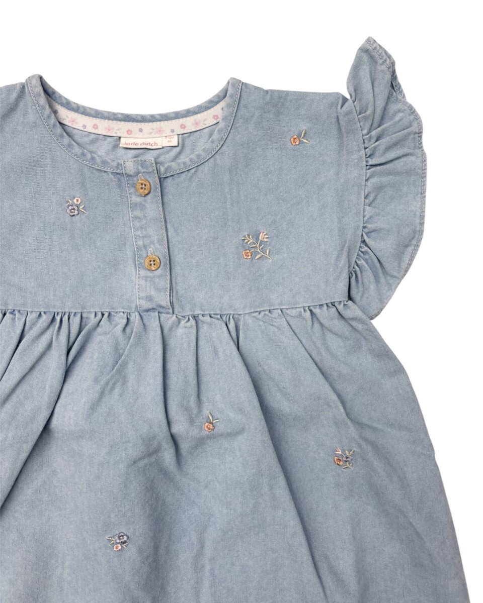 Abito in denim leggero ricami floreali.