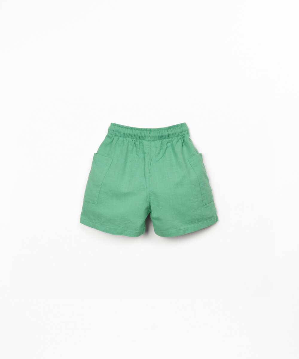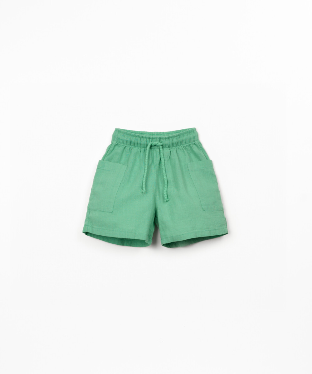 Bermuda con vita elasticizzata, cordoncino regolabile e due tasche laterali.