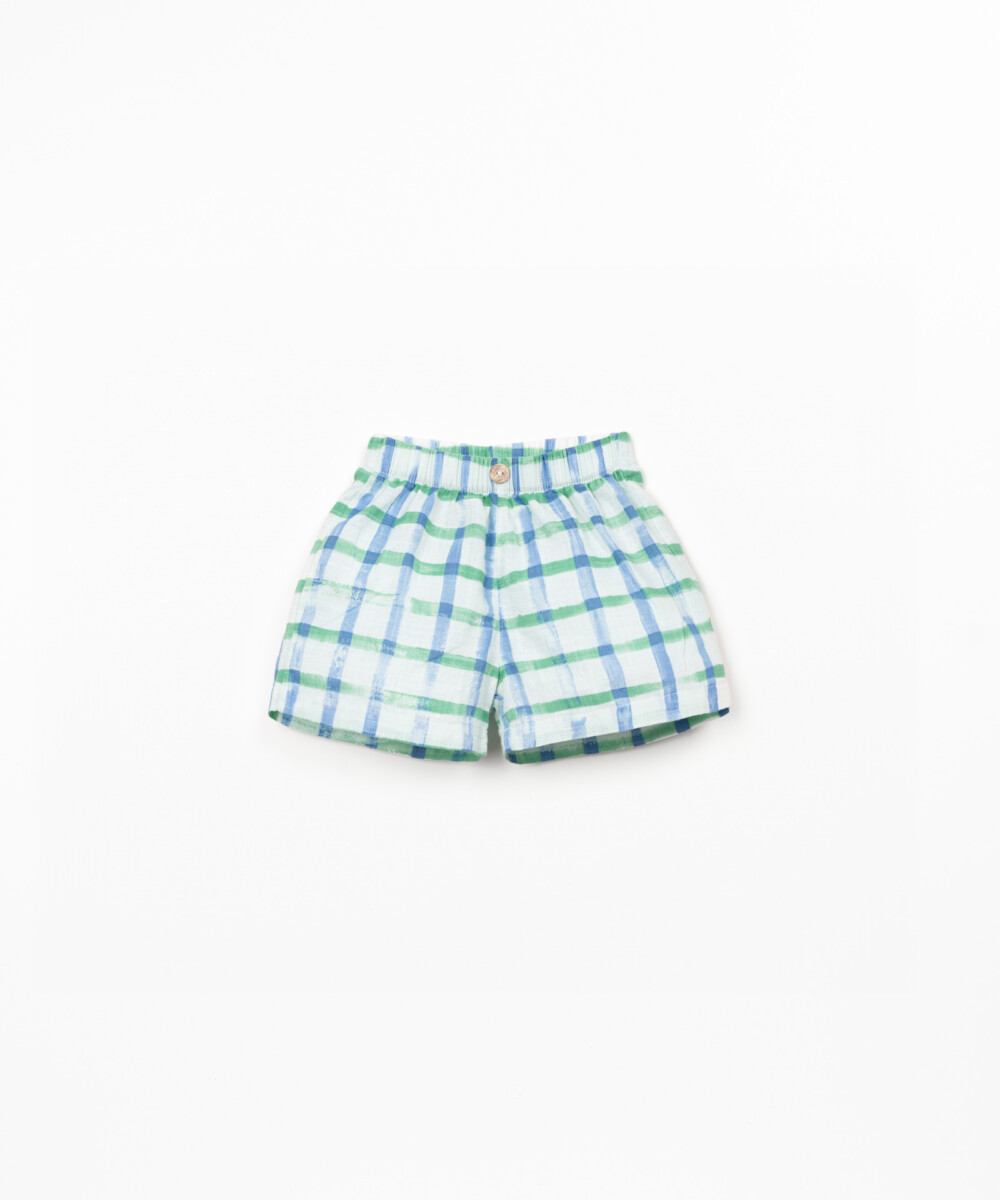 Bermuda con cintura elastica, bottoncino decorativo in cocco e stampa a quadri.