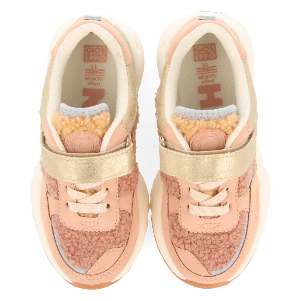 Sneakers multicolor con effetto teddy e dettagli metalizzati.